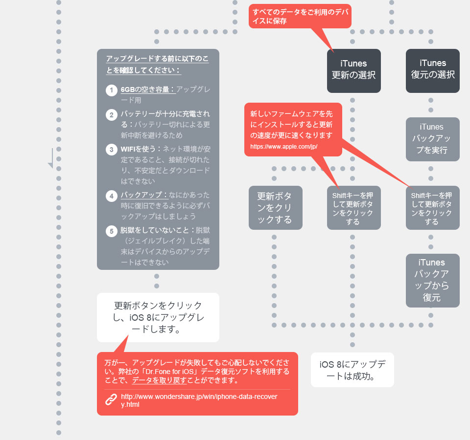 万が一、アップグレードが失敗してもご心配しないでください。弊社の「Dr.Fone for iOS」データ復元ソフトを利用することで、データを取り戻すことができます。