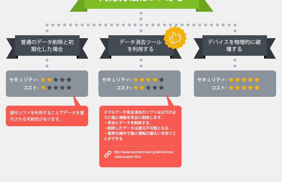普通のデータ削除と初期化した場合