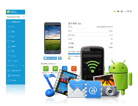 携帯管理: Android内のアプリ、メディアなどのデータをPCで簡単に管理。