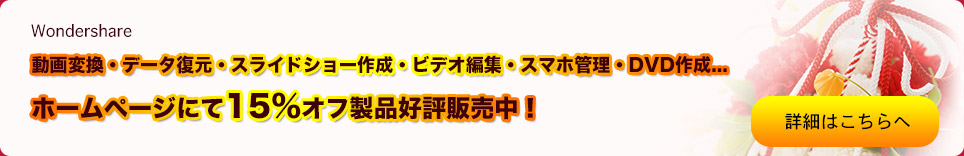 Wondershare年末年始お買い得キャンペーンは2015年1月18日を持ちまして終了させていただきました。