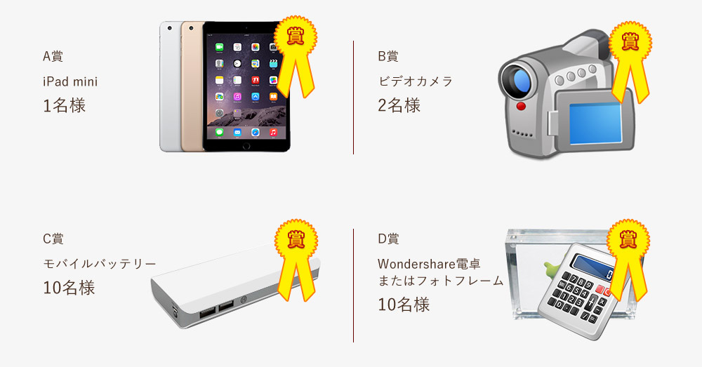 *抽選対象:キャンペーン期間中に本ページまたはホームページでWondershare製品をご購入いただいた、日本在住のお客様全員