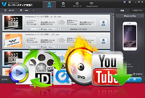 動画(avchdやm2ts形式など)、音楽やDVDを他のファイル形式に変換。YouTubeからダウンロードした動画のDVD作成が可能。動画、音楽ファイルの編集も実現。